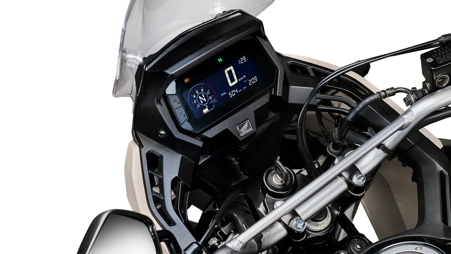 O painel da Sahara 300 conta com um indicador de marcha, item exclusivo na categoria. Além disso, oferece conta-giros, marcador de combustível, hodômetros parcial e total e relógio. Inovação e funcionalidade em cada detalhe.