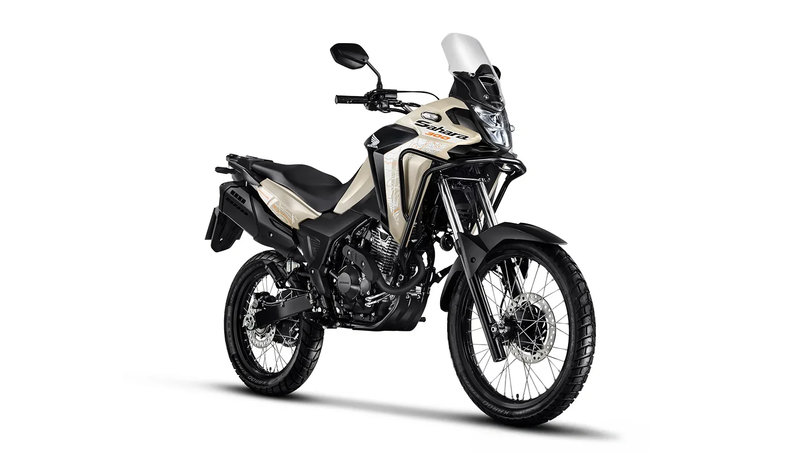 A Sahara 300 possui um design sólido, transmitindo resistência e modernidade.