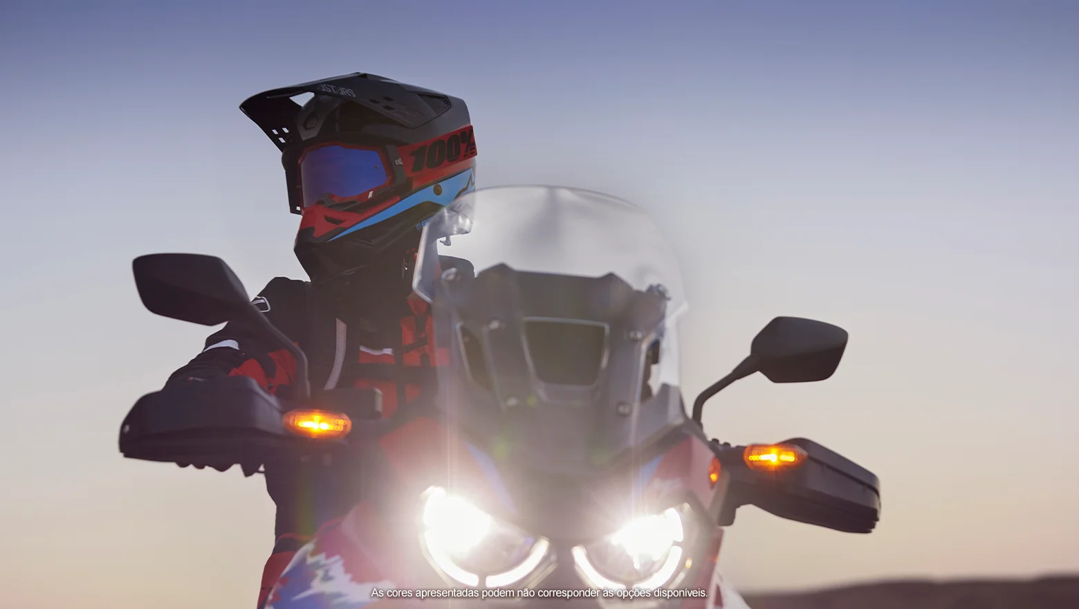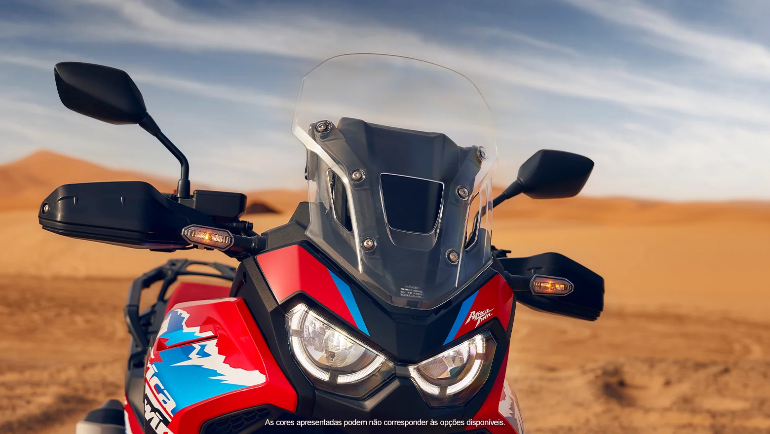 A assinatura de LED dos faróis da nova Africa Twin MT é marcante, seja durante o dia ou à noite. A potência de iluminação e o formato dos faróis dão uma aparência agressiva à big trail.