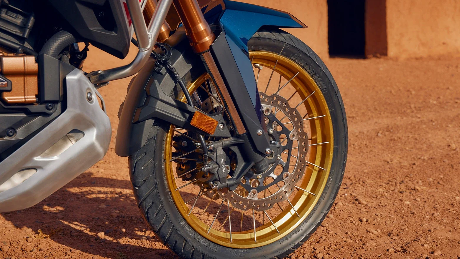 A nova Honda Africa Twin MT mantém as rodas raiadas de 21” na dianteira e 18” traseira. Mas agora com a tecnologia tubeless, ela conta com pneus sem câmara, que retêm o ar por mais tempo em caso de furo, aumentando a segurança e a praticidade.