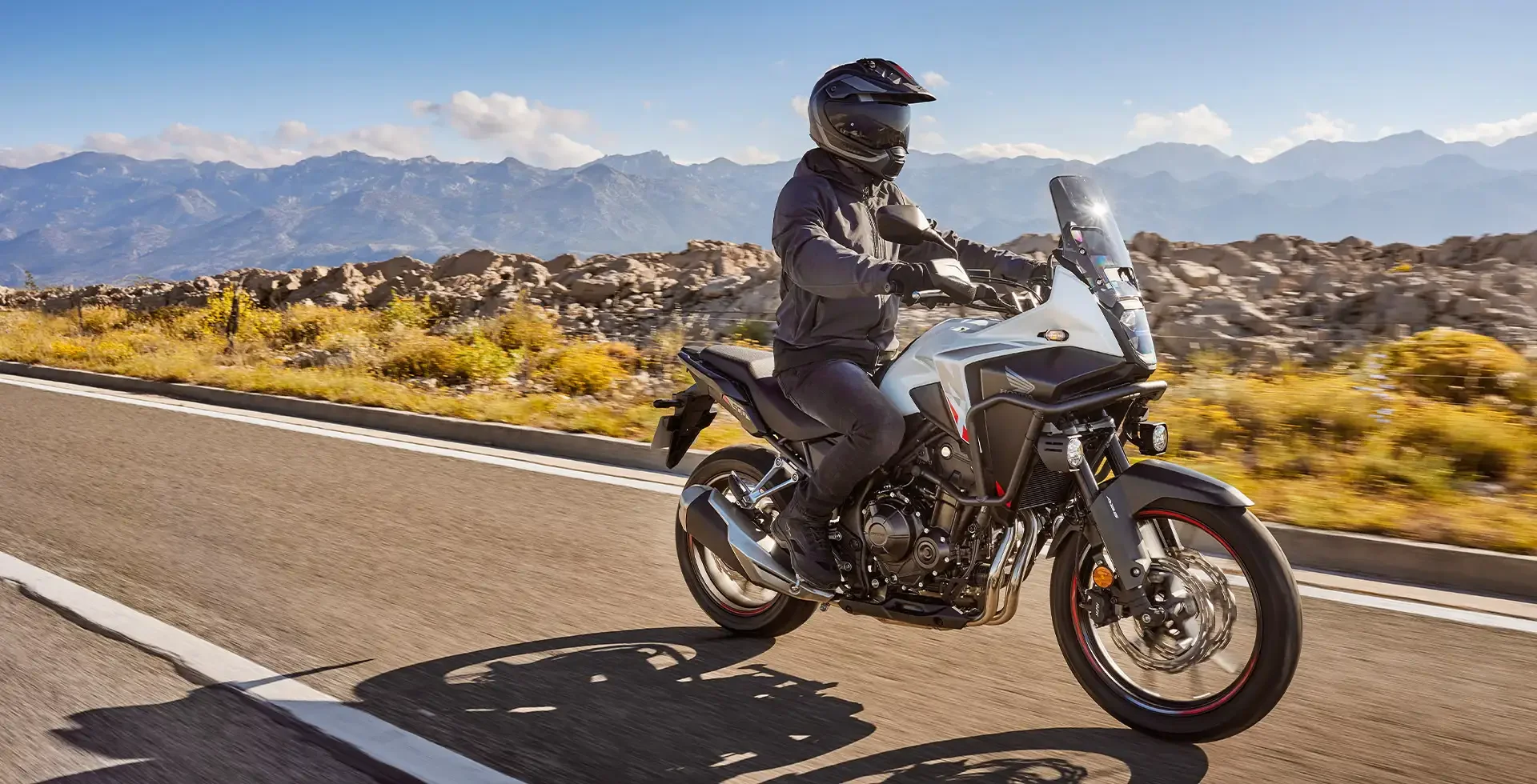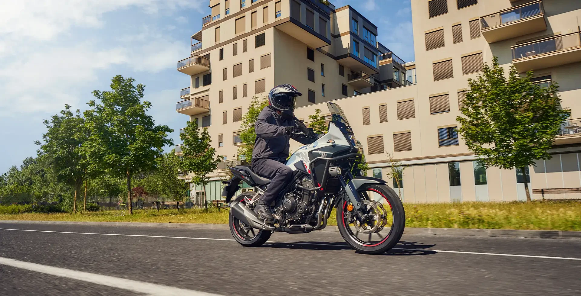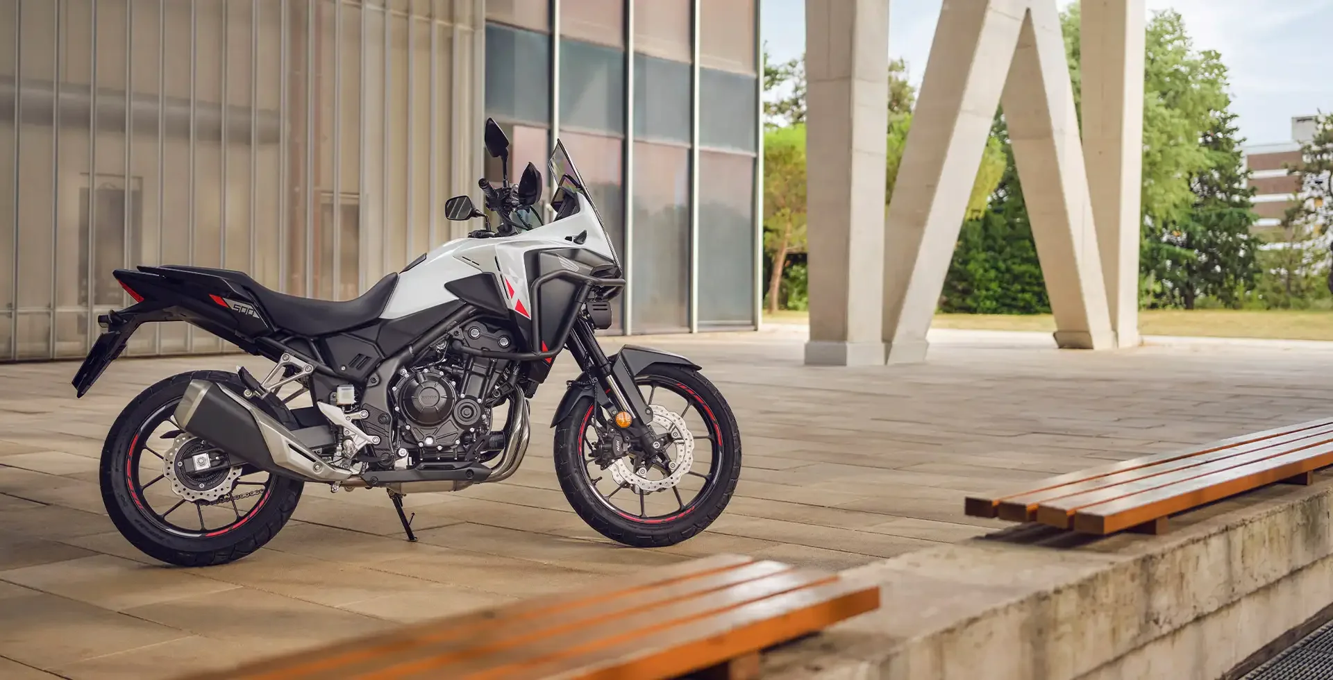 A Honda NX 500 apresenta um visual mais robusto e aventureiro, com carenagens redesenhadas para melhorar a aerodinâmica e a estabilidade em alta velocidade. O novo farol da moto verticalizado confere um aspecto mais agressivo, enquanto o para-brisa oferece melhor proteção na pilotagem.